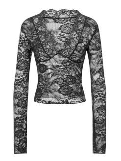 Women Lace Tops Long Sleeve Deep V Neck Slim Fit Corset Blouse Casual Party Club Sexy Elegant Cropped Shirts Summer Fall