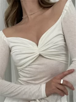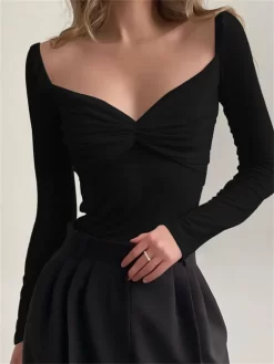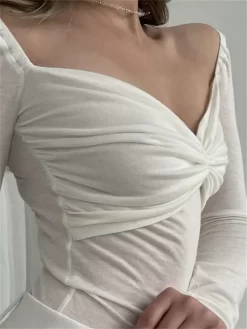 Women Blouse Long Sleeve Square Neck Ruched Corset Crop Tops Summer Fall Chic Y2K Shirts Sexy Elegant Shirts
